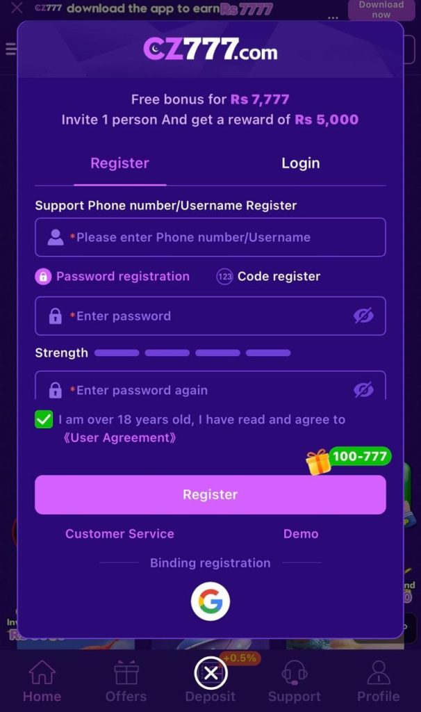 The signup process on CZ777 is simple. Most platforms only ask for a username, password, and basic information. After creating an account, players can log in anytime using their credentials.
