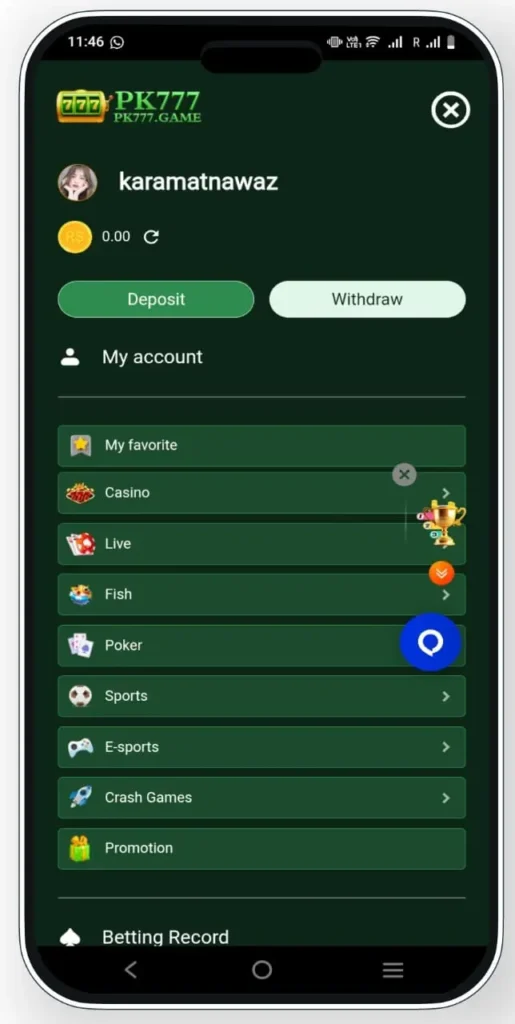 The main dashboard of the app is very clean. Every section such as games, wallet, profile, settings, and support is clearly shown. Even new users can understand the system in just a few minutes.